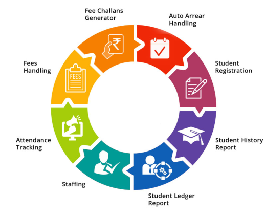This also includes many important features likely; GR number assign, appointments with principal and teachers, Registration process, Admissions, Medical records, Classroom Management, Custom Fee Templates, Student’s Profile Management, Fee challan formats, Scholarships, benefits and other miscellaneous expenses, Promotion and Transfers.